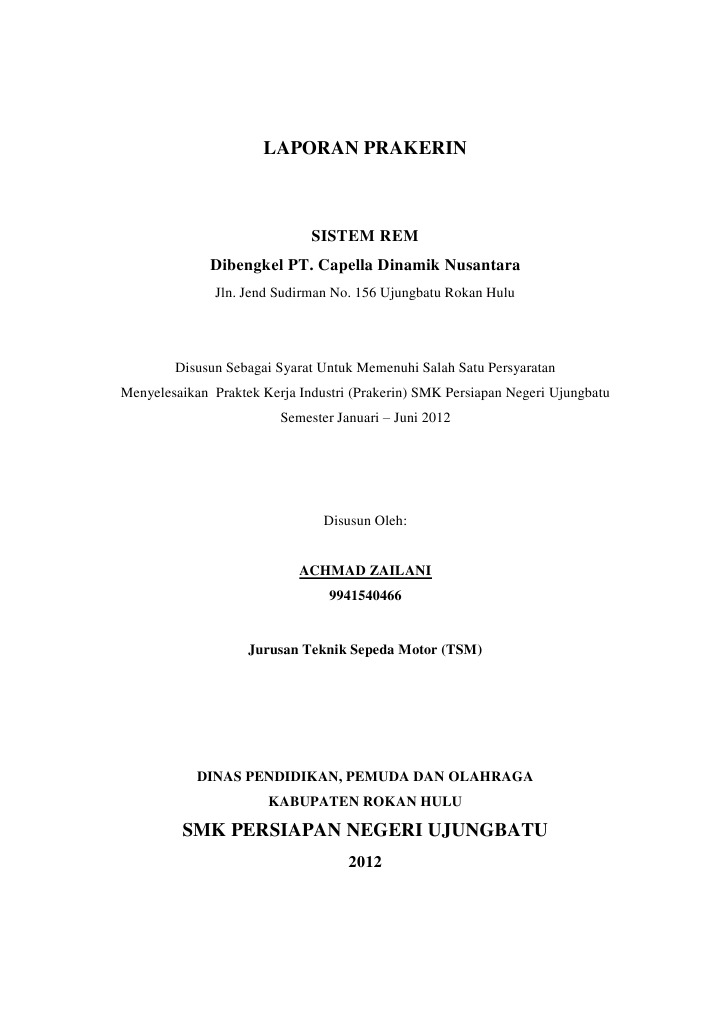 3) tingkatkan terus kedisiplinan serta kerjasama antar pegawai. Biasanya para pelajar smk akan mengalami masa dimana pelajar smk harus melakukan praktek magang atau prakerin (praktek kerja industri). Kantor kecamatan kepil kabupaten wonosobo, profil kantor kecamatan. Susunan sampul atau cover laporan. Langsung saja untuk pembahasan terlengkapnya berikut dibawah ini. Contoh laporan pkl yang benar dengan pembahasan lengkap. Laporan praktik kerja industri (prakerin) ini telah diteliti, dipelajari dan disetujui. Kegiatan ini dilakukan bila sobat pelajar smk kelas 11 atau kelas 2 dan dilaksanakan selama 2 atau 3 bulan lamanya. Buku panduan prakerin smk negeri 1 batealit dan laporan praktik kerja industri yang disusun oleh azmiatin nazilahtahun pelajaran 2014/2015 sebagai referensi pembuatan laporan. Apakah anda sudah selesai melaksanakan prakerin tapi bingung bagaimana. Wajib loh hukumnya kalau kita mengerjakan makalah. Praktik kerja lapangan) adalah salah satu contohnya saya mengambil jurusan tkj, ya sudah jelas saya prakerin di tempatkan di instansi yang ada kaitannya dengan jurusan tkj. Bab ii i s i 2.1 sejarah perusahaan pd.